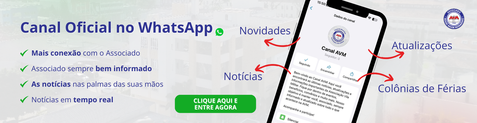 O presidente da AVM - Associação da Vila Militar tem uma mensagem especial para você: Venha conhecer o caminho para um futuro mais seguro e próspero conosco. Junte-se à nossa família hoje e descubra como podemos cuidar do seu bem-estar financeiro.