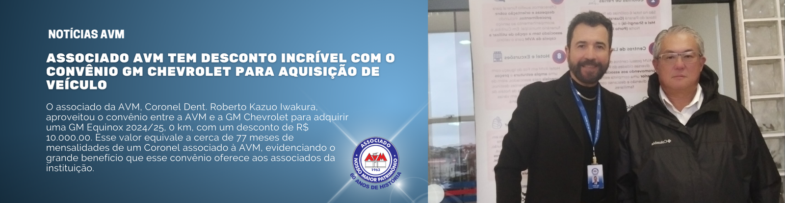 O associado da AVM, Coronel Dent. Roberto Kazuo Iwakura, aproveitou o convênio entre a Associação…