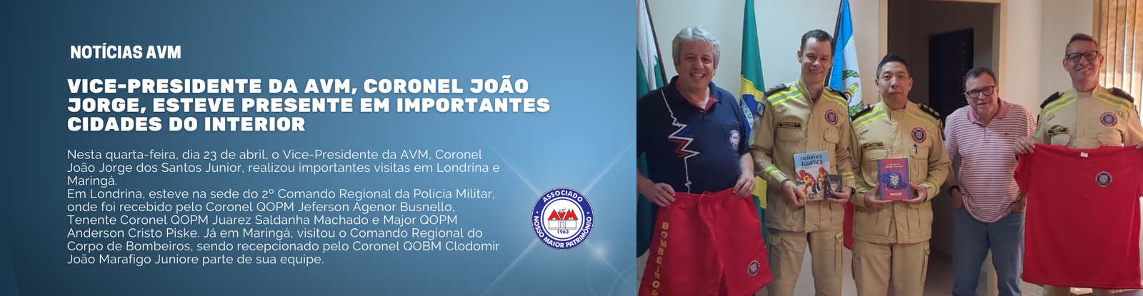 Nesta quarta-feira, dia 23 de abril, o Vice-Presidente da AVM, Coronel João Jorge dos Santos Junior, realizou importantes visitas em Londrina e Maringá.